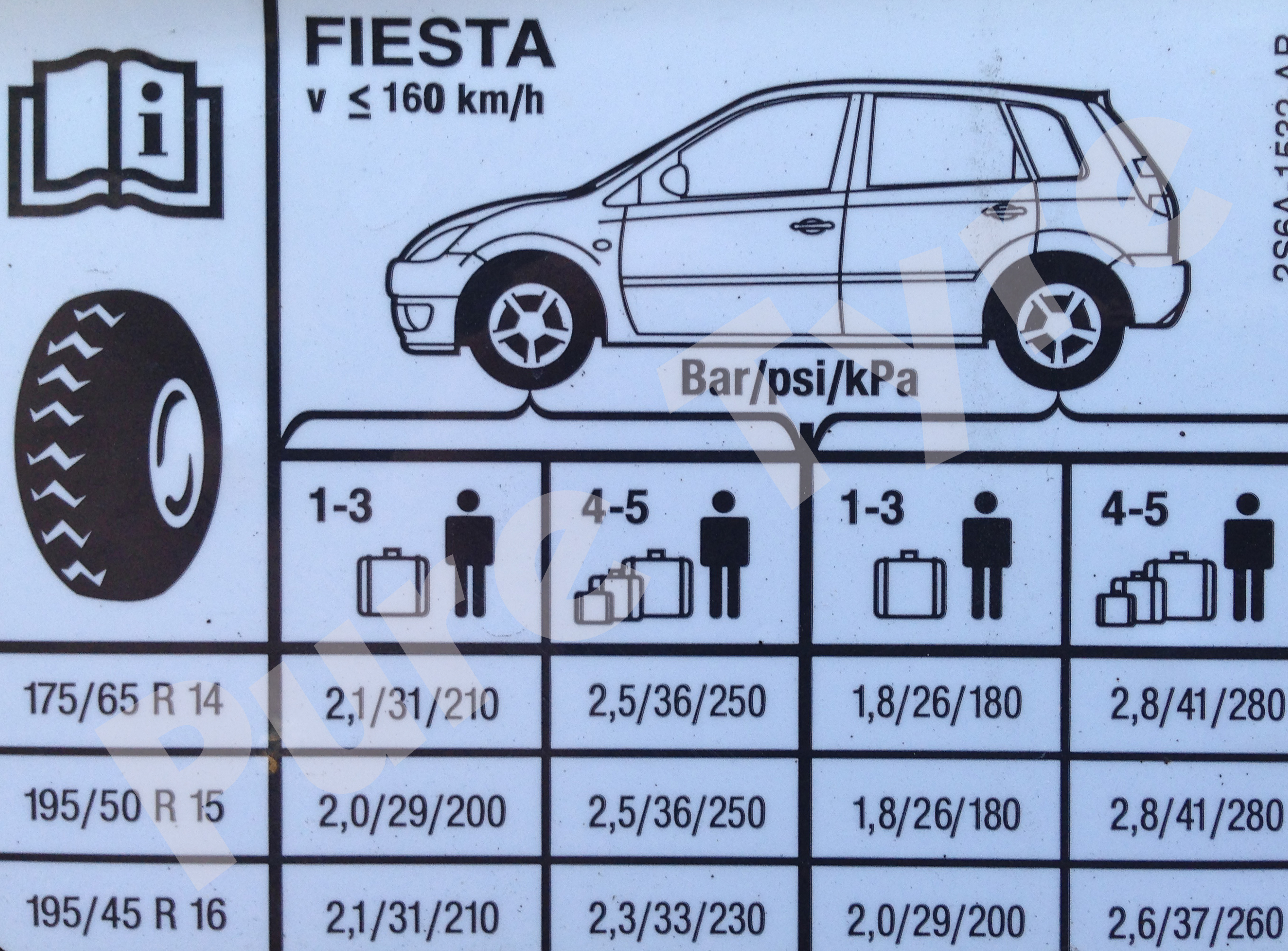 2002 – 2008 Ford Fiesta Tyre Pressure Placecard